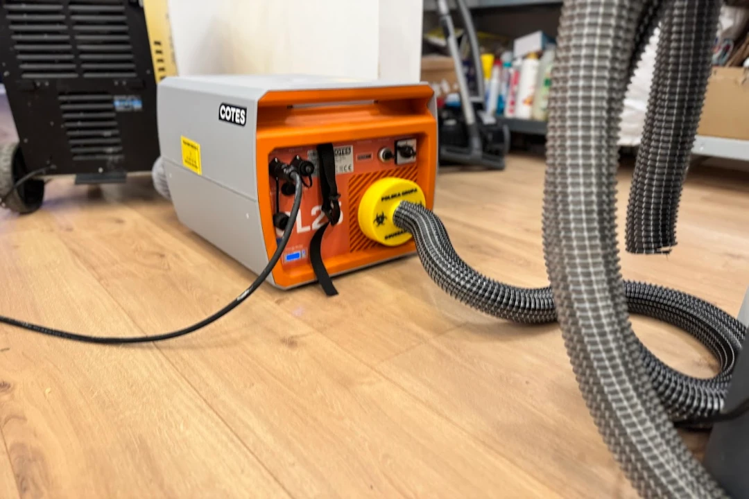 Osuszacz adsorpcyjny Cotes CL26 to bardzo skuteczny osuszacz powietrza, w którym innowacyjne rozwiązania eliminują typowe problemy związane ze sprzętem osuszającym. Osuszacz jest mały i bardzo lekki, co poprawia ergonomię. Natomiast zestaw okienny Cotes to prosty i oszczędzający czas system do wyrzutu wilgotnego powietrza procesowego.